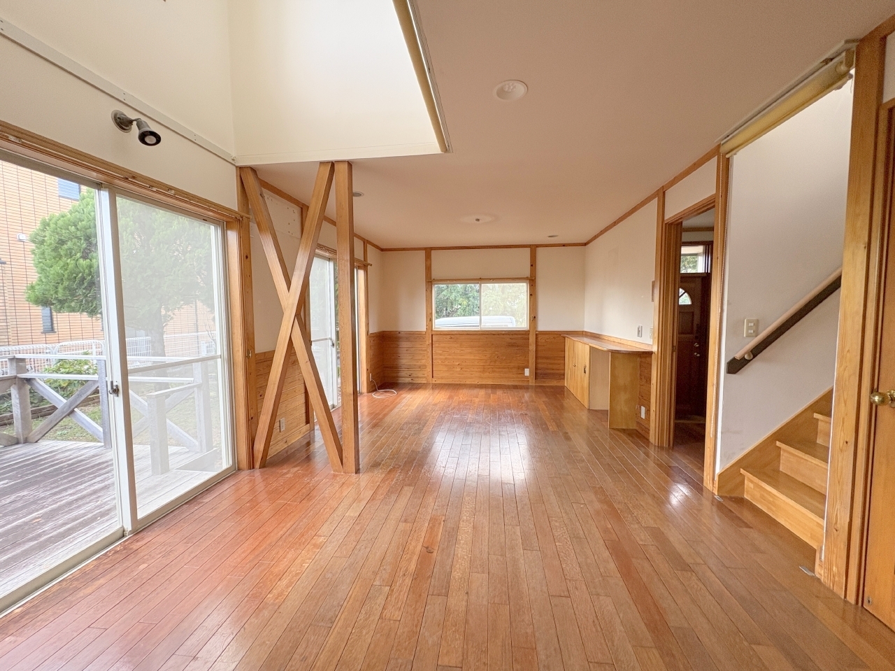 庭にあるウッドデッキテラスで寛ぎの時間、バーベキューなどもお楽しみ頂けます!