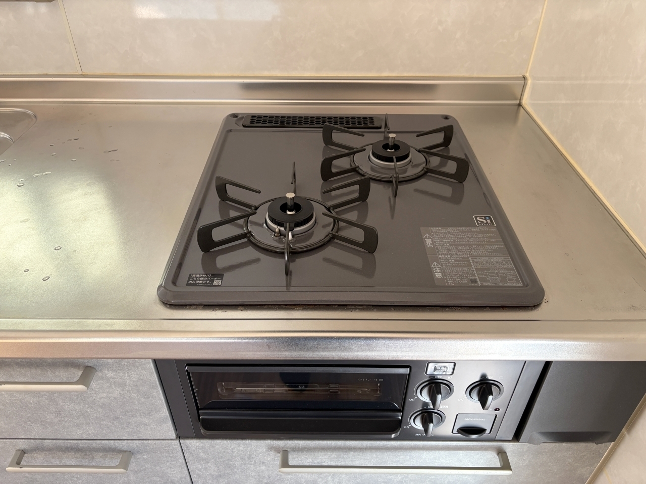システムキッチンは2口コンロで使い易いです。